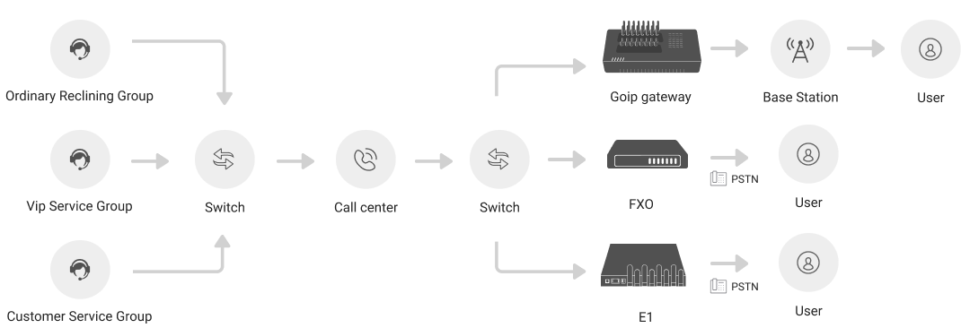 The voice gateway supports voice outgoing, voice incoming and call center functions for efficient communication and customer service.